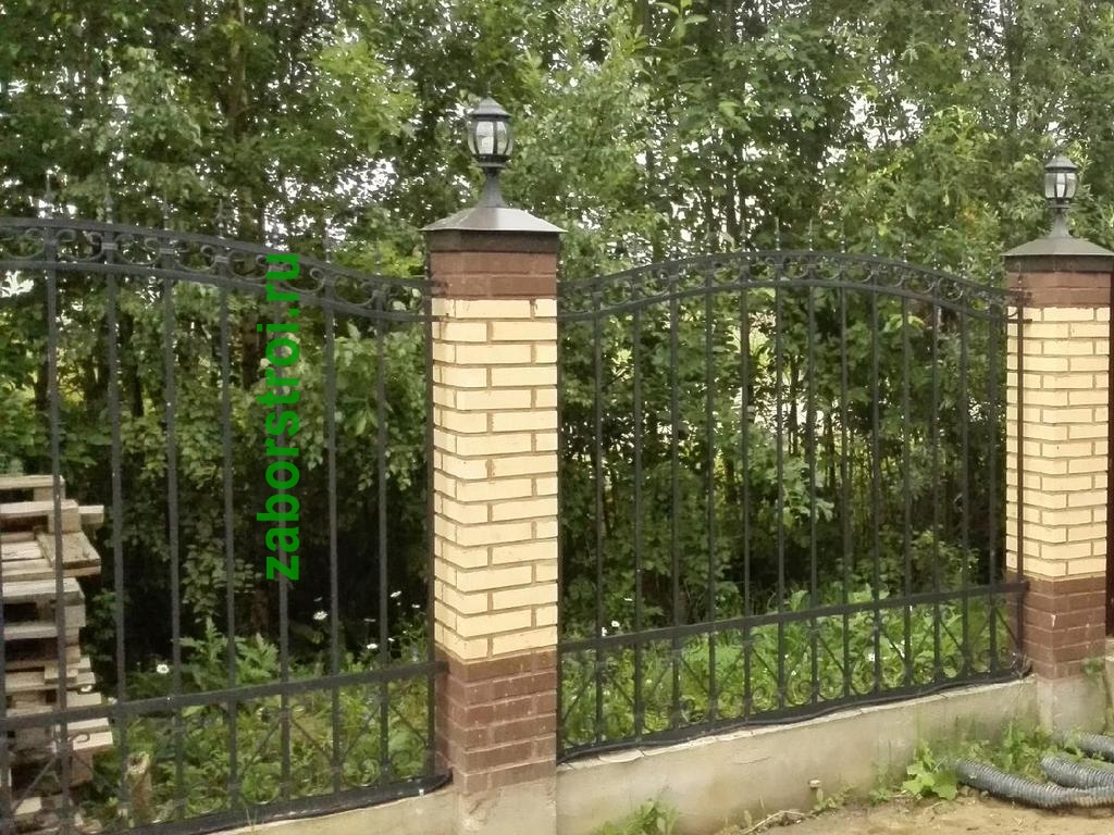 Сварные заборы с кирпичными столбами 70 метров