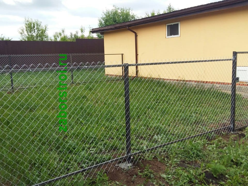 Забор из металлической сетки рабицы 10 метров